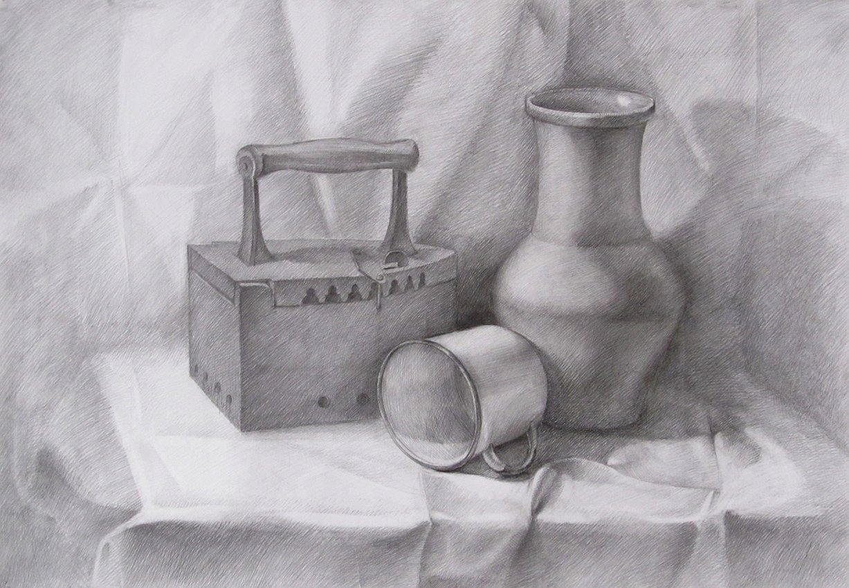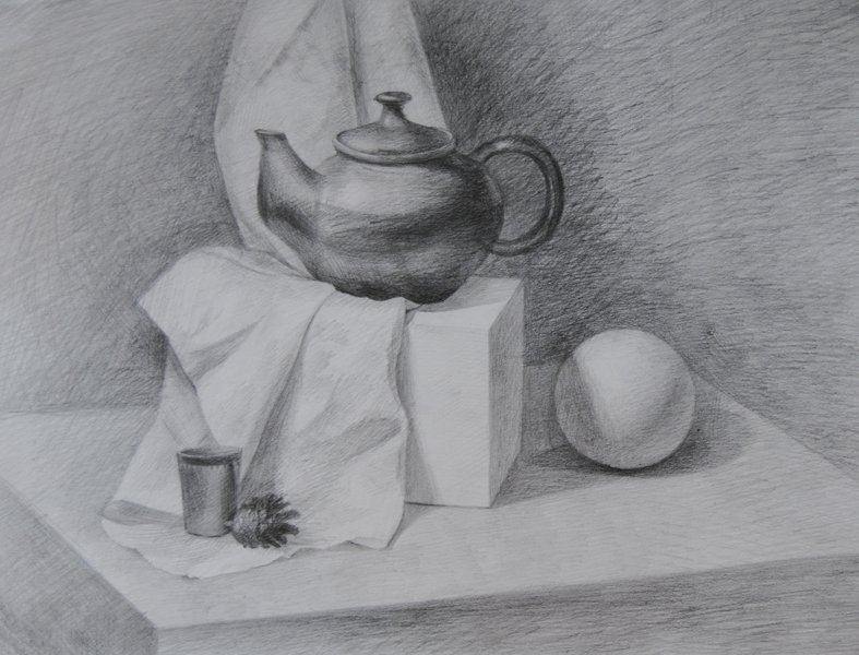 ![Учебный натюрморт карандашом]()
