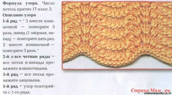 ![Узор веер спицами схема и описание]()