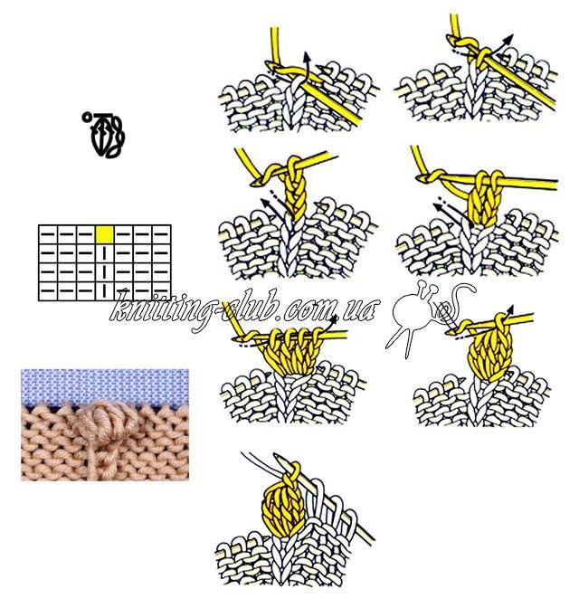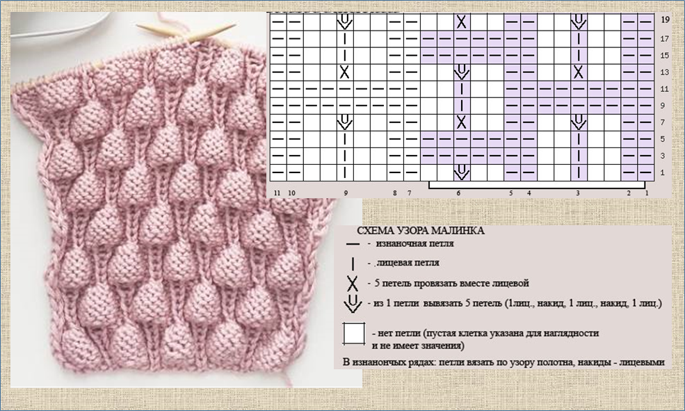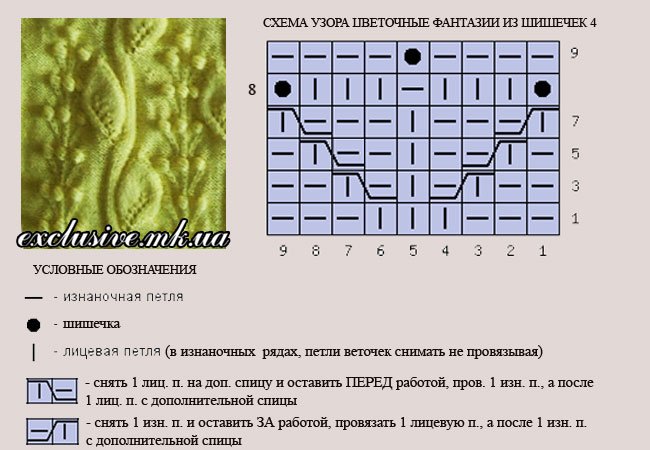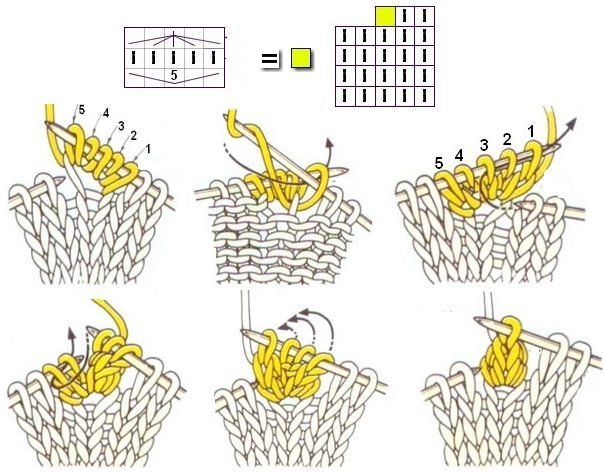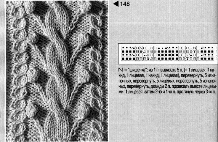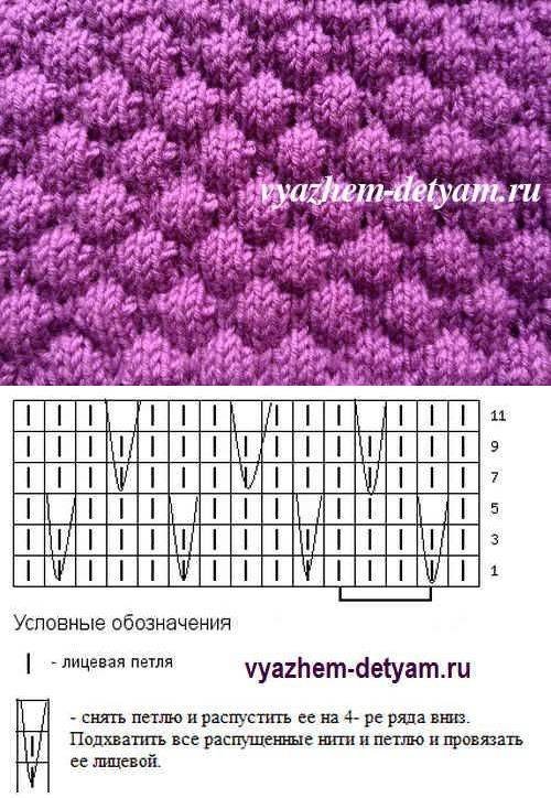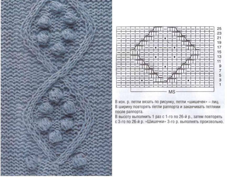 ![Узоры шишечки спицами со схемами простые и красивые]()