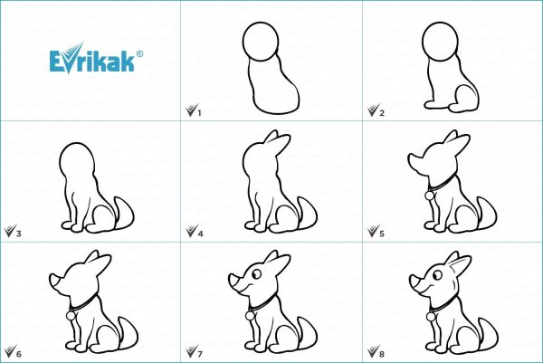 Рисунок собаки пошагово