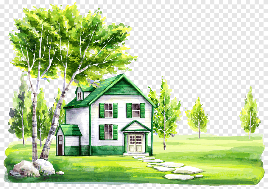 ![Нарисованный дом с лужайкой]()