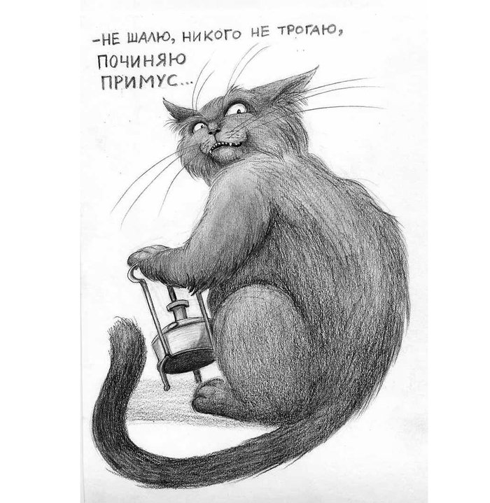 ![Кот Бегемот рисунок с примусом]()