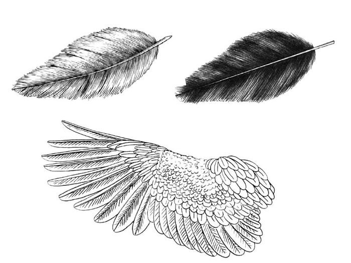 ![Зарисовка перьев птиц]()