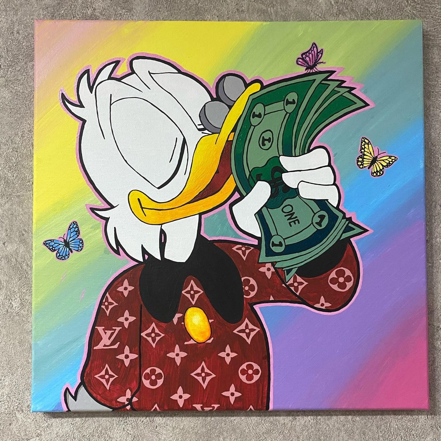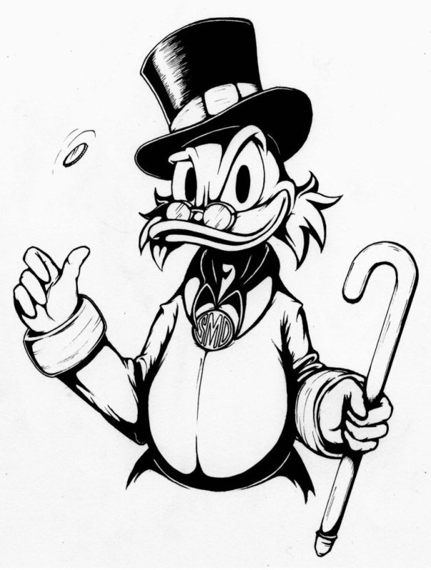 В замечательном рисунке представлен Макдак Скрудж, известный персонаж мультсериала и комиксов о приключениях Дональда Дака и его семьи. Этот культовый герой изображен в своей характерной одежде: в длинном плаще, тёмных очках и с привычным недовольным выражением лица. Рисунок передает энергичность и непредсказуемость этого персонажа, а также его известную жадность и страсть к накоплению богатства. Он является символом упорства и настойчивости, всегда готового к новым приключениям и поискам сокровищ. Каждая линия и деталь рисунка аккуратно проработаны, что делает его живым и неповторимым. Безусловно, это потрясающий рисунок для поклонников этого уникального персонажа и любителей классических мультфильмов.