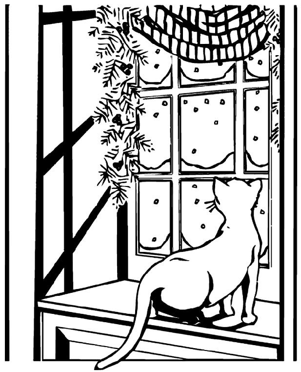Раскраска кот на подоконнике