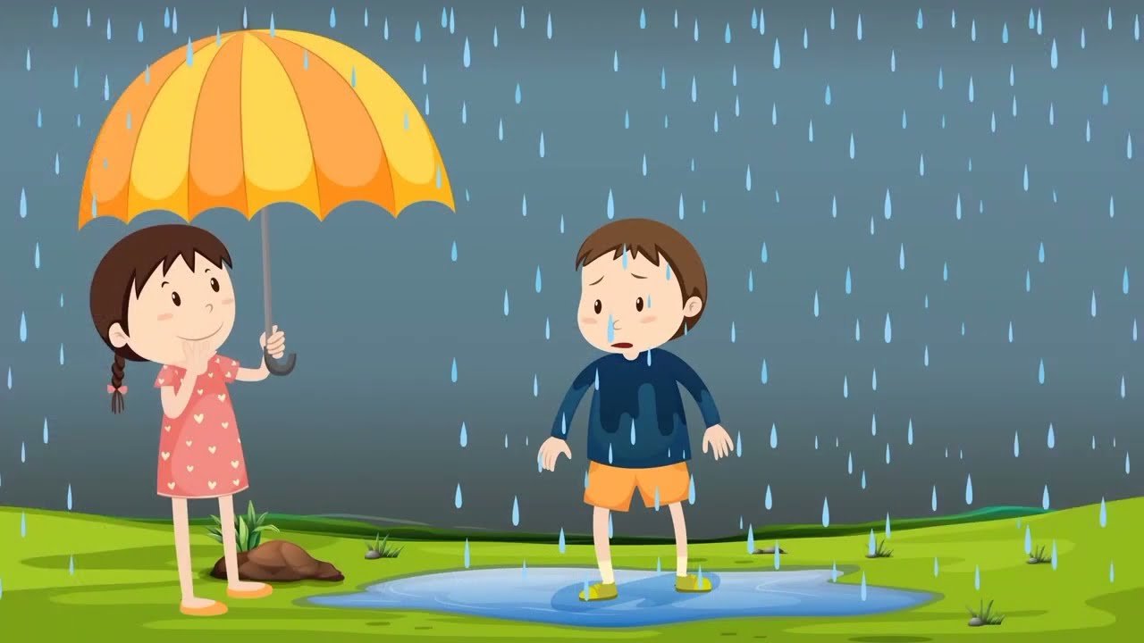 ![Дождик и ребенок мультяшный]()