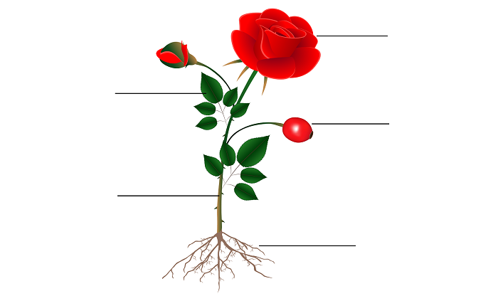 ![Части цветка: (стебель, листья, бутон, корни)]()