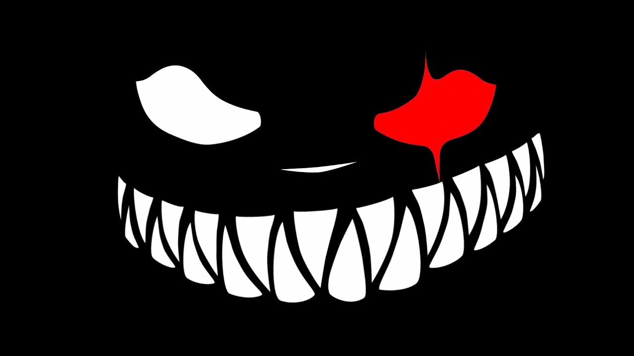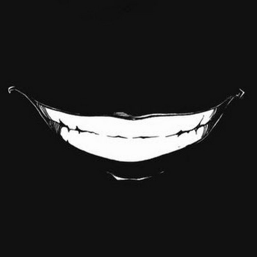 ![Злобная улыбка на черном фоне]()