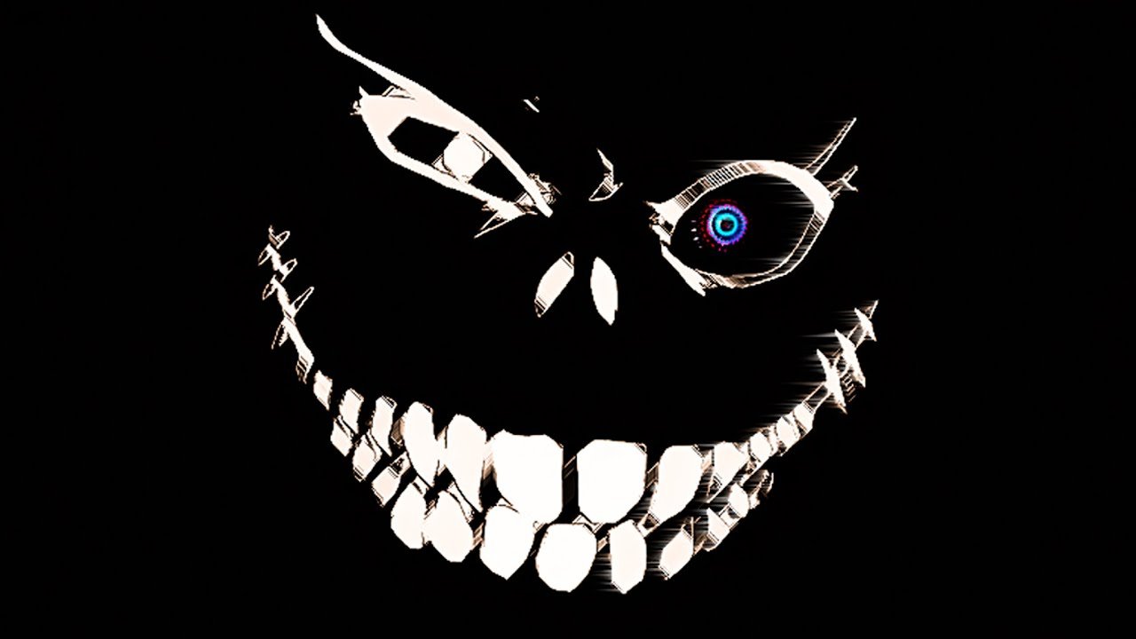 ![Зловещая улыбка на черном фоне]()