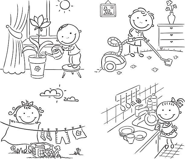 Раскраска уборка в доме для детей