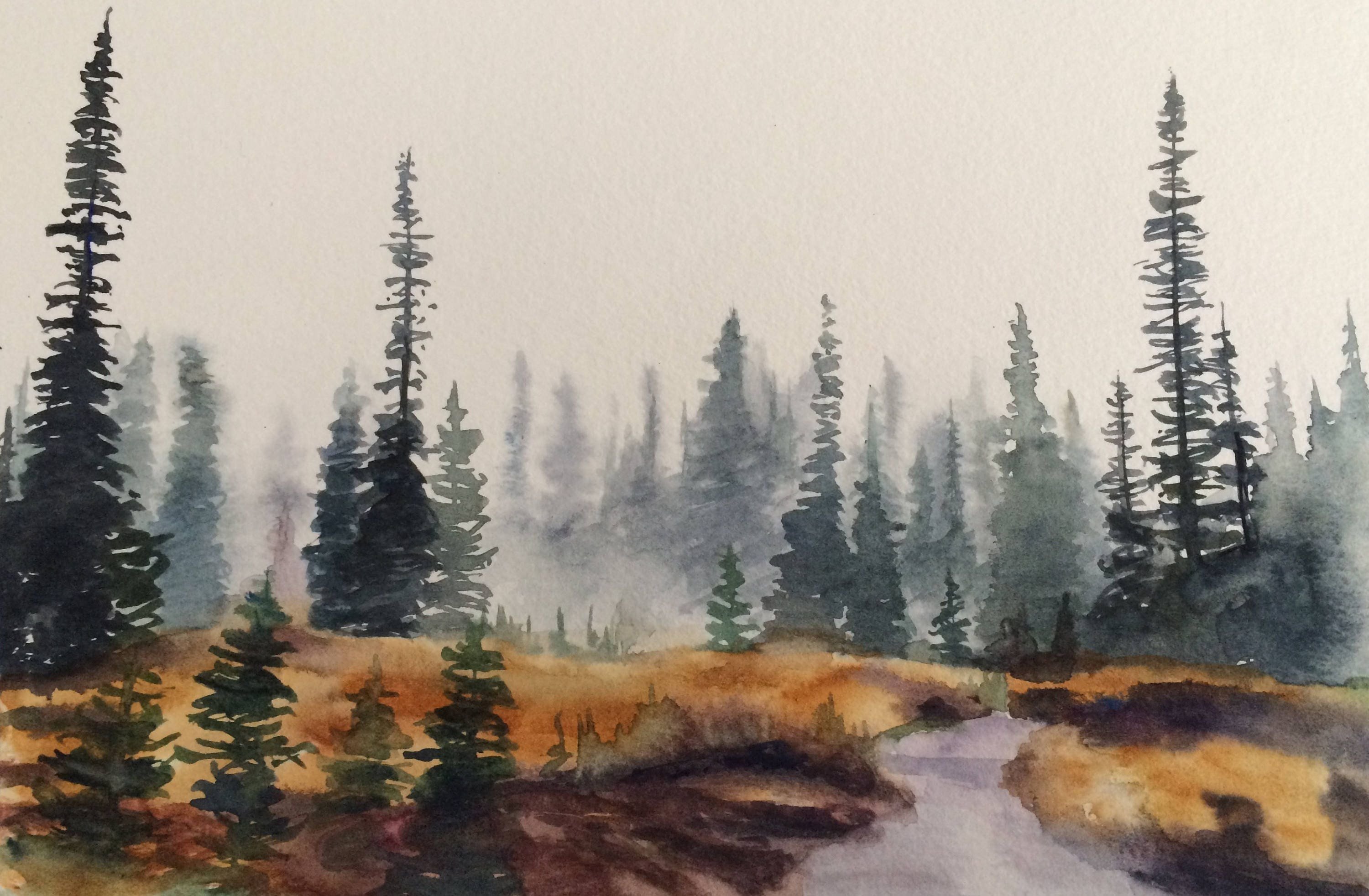 Ель акварелью