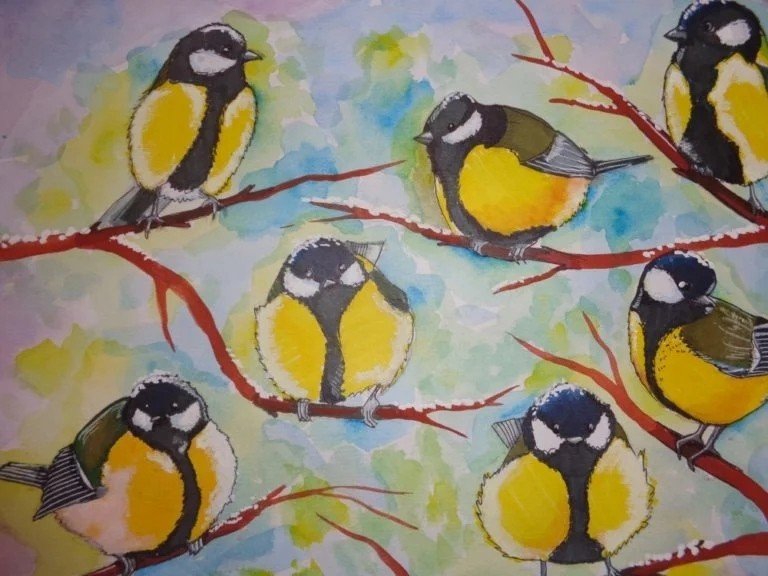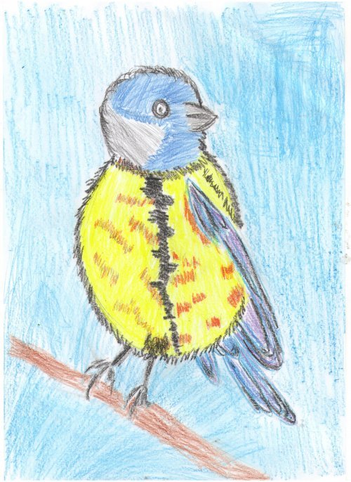 Этот прекрасный рисунок изображает невеличкую синичку, которая восхищает своей красотой и изящностью. Ее яркие синие перья и белое горло создают привлекательную палитру цветов. Синичка показана на ветке дерева, что добавляет естественности и природной обстановки. Ее глаза полны жизни и интереса, а пушистый хвостик создает эффект легкости и движения. Этот рисунок передает неповторимую красоту и нежность синички, что делает его привлекательным для любителей природы и искусства.