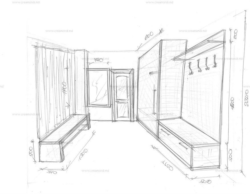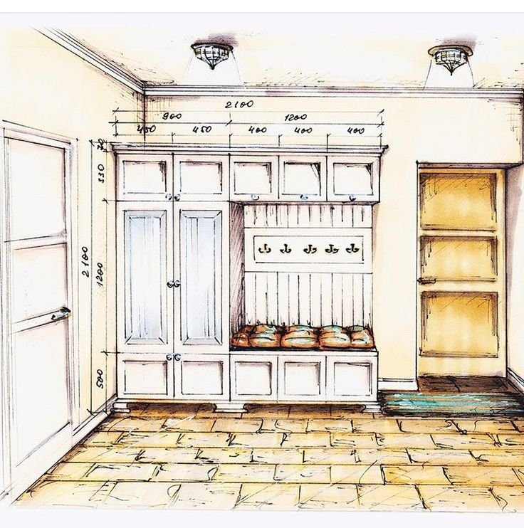 ![Скетчи интерьеров прихожая]()
