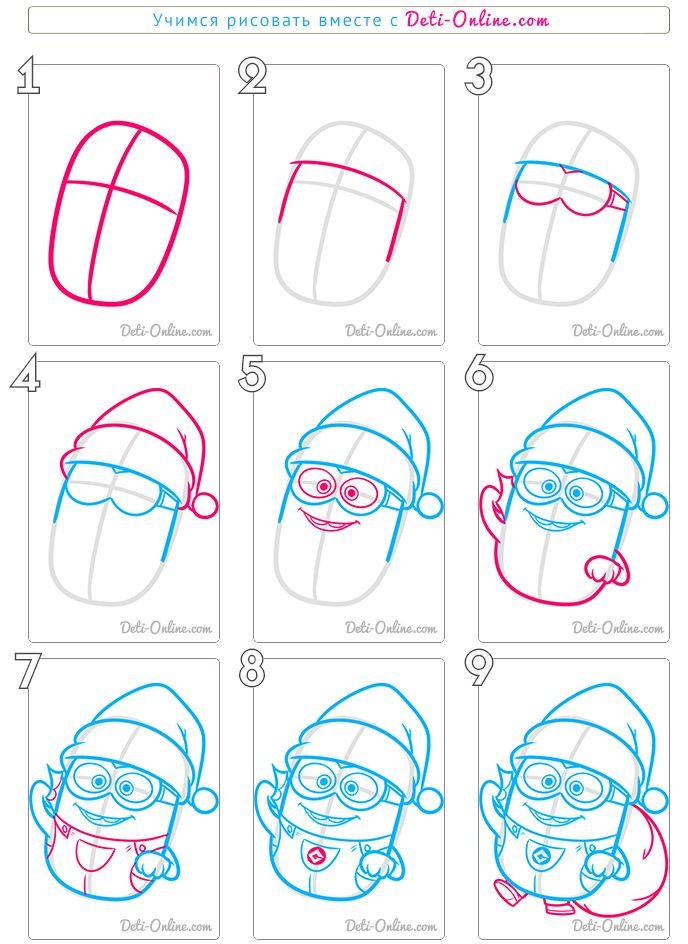 ![Поэтапное рисование Деда Мороза и Снегурочки]()