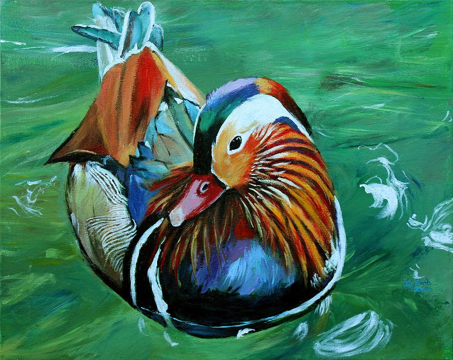 Птица мандаринка, также известная как мандаринская утка, является одним из самых красивых видов диких уток. Ее рисунок отличается невероятной яркостью и разнообразием цветов. Особенно впечатляющей является ее окраска в период размножения, когда самцы приобретают причудливые и пестрые оперения и настолько прекрасны, что кажется, будто они вышли прямо из сказки. Голова самца украшена ярко-оранжевым клювом и губой, а его шея и грудь украшены богатыми зелеными, фиолетовыми и синими оттенками. Крылья и спина заметно темнее по сравнению с другими частями тела, создавая эффектный контраст. Самки обладают более скромной окраской, но все равно выглядят очень изящно. Мандаринки обитают в водоемах Южной Азии, где они живут в близости от лесных зон и питаются растительностью, водными насекомыми и моллюсками. Эти прекрасные птицы не только радуют глаз своей красотой, но и играют важную роль в экосистеме, помогая распространять семена растений и поддерживая баланс водных экосистем.