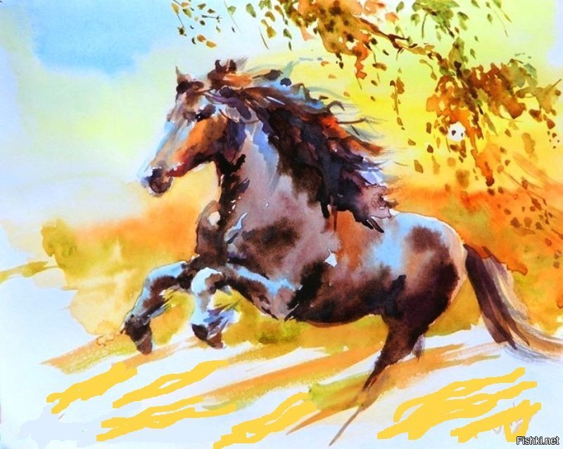 Лошади акварелью картины