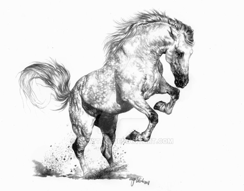 Лошадь в прыжке карандашом