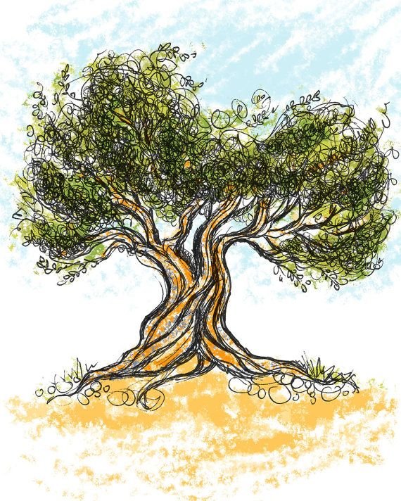 Оливковое дерево нарисовать
