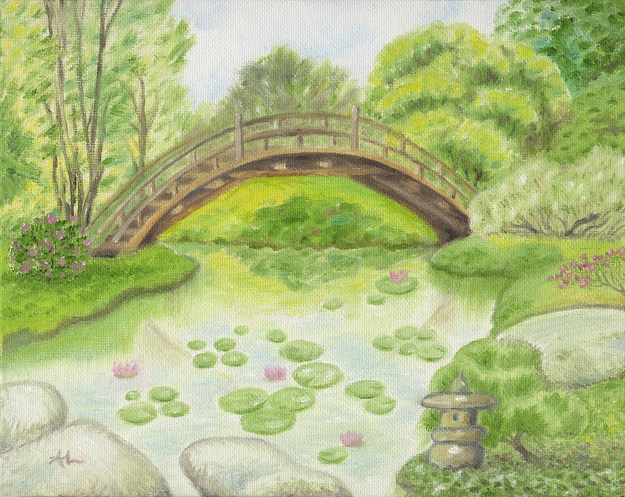 Мостик в саду рисунок
