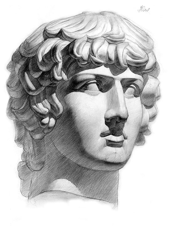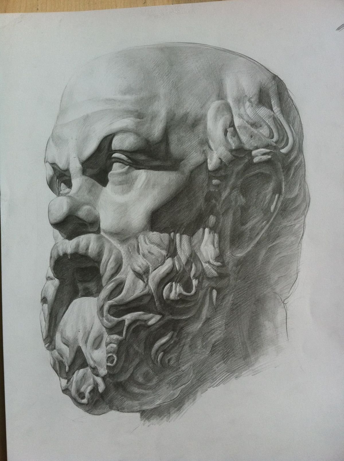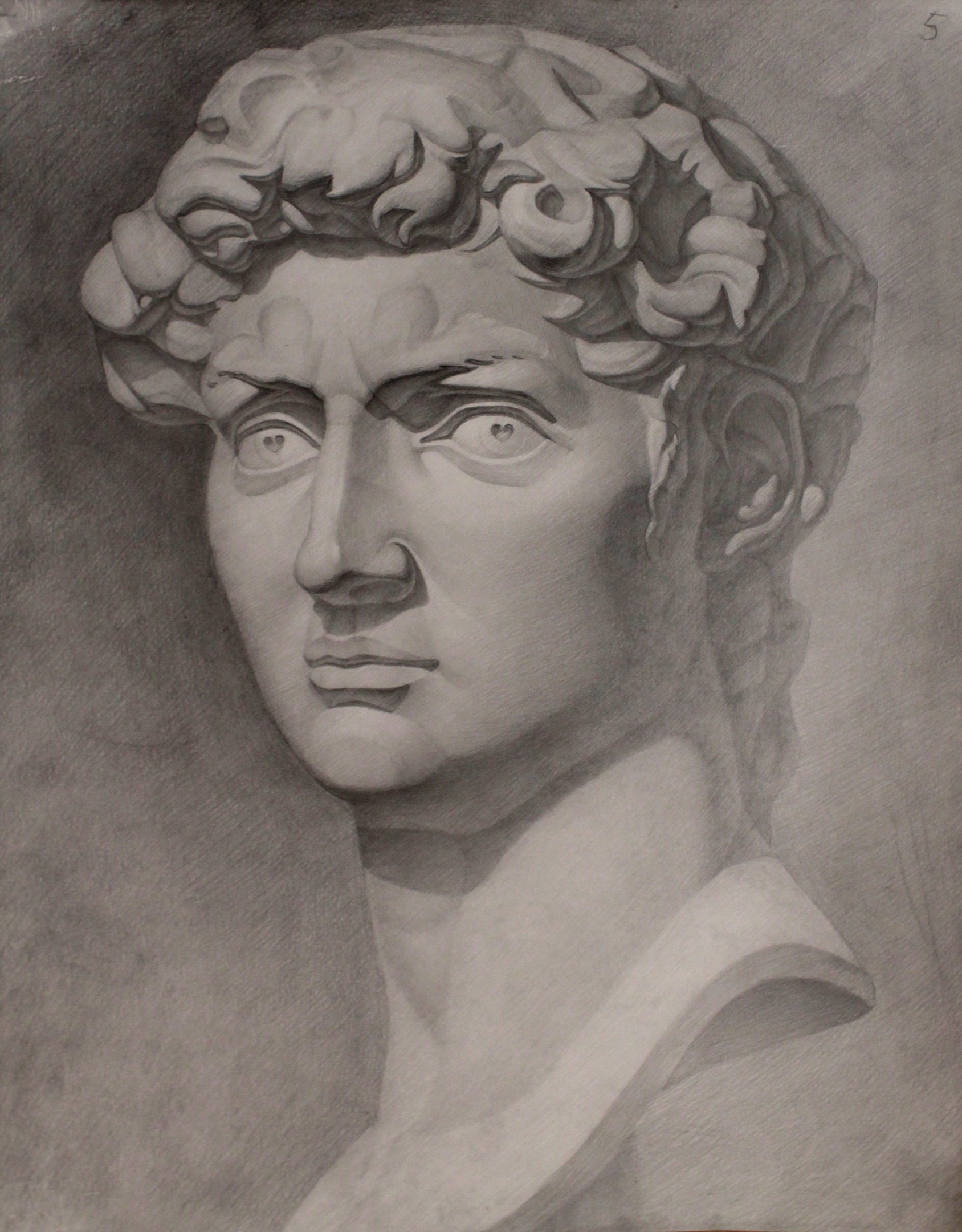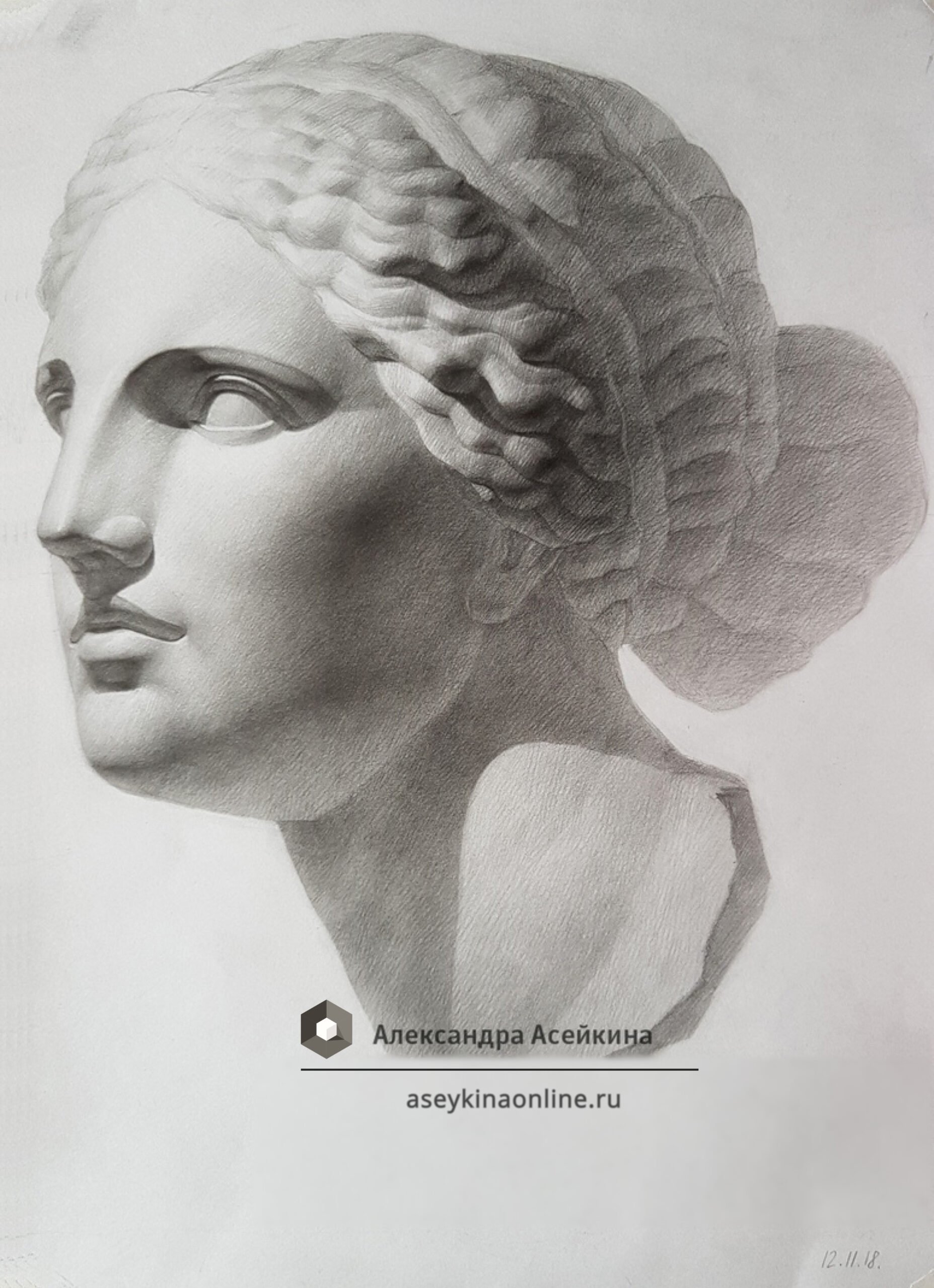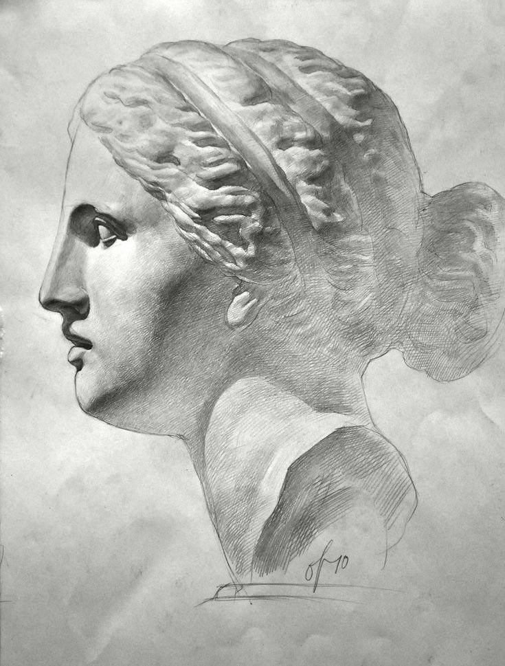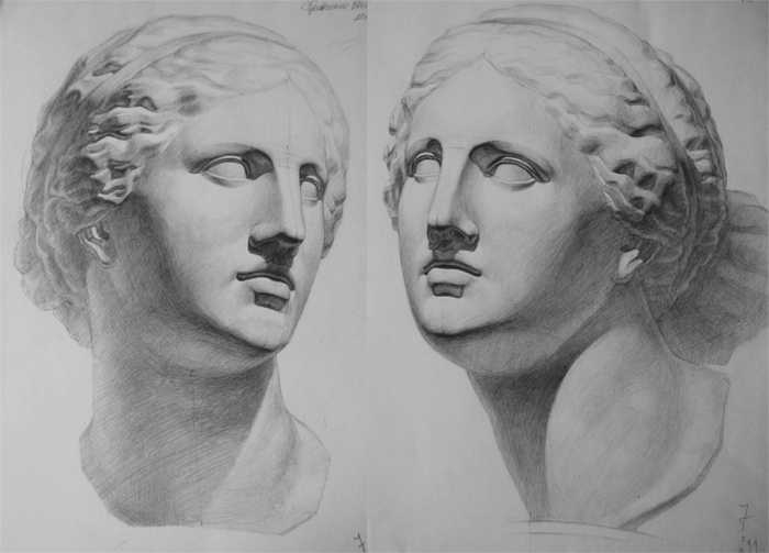 ![Гипсовая голова рисунок на вступительных экзаменах]()