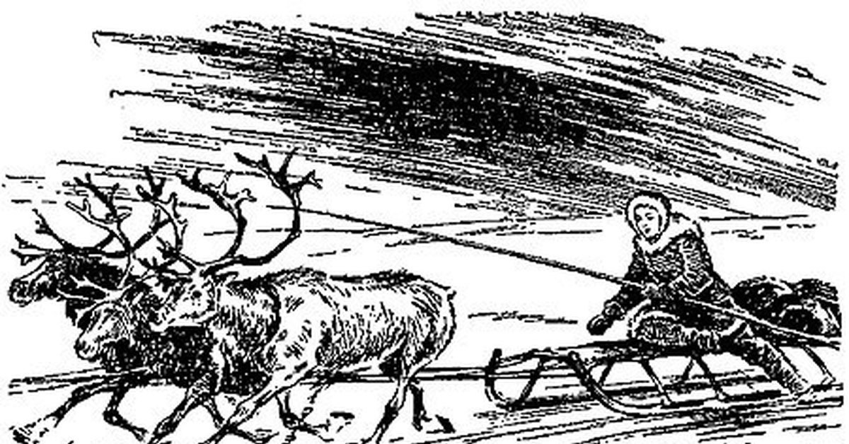 ![Оленья упряжка линогравюра]()