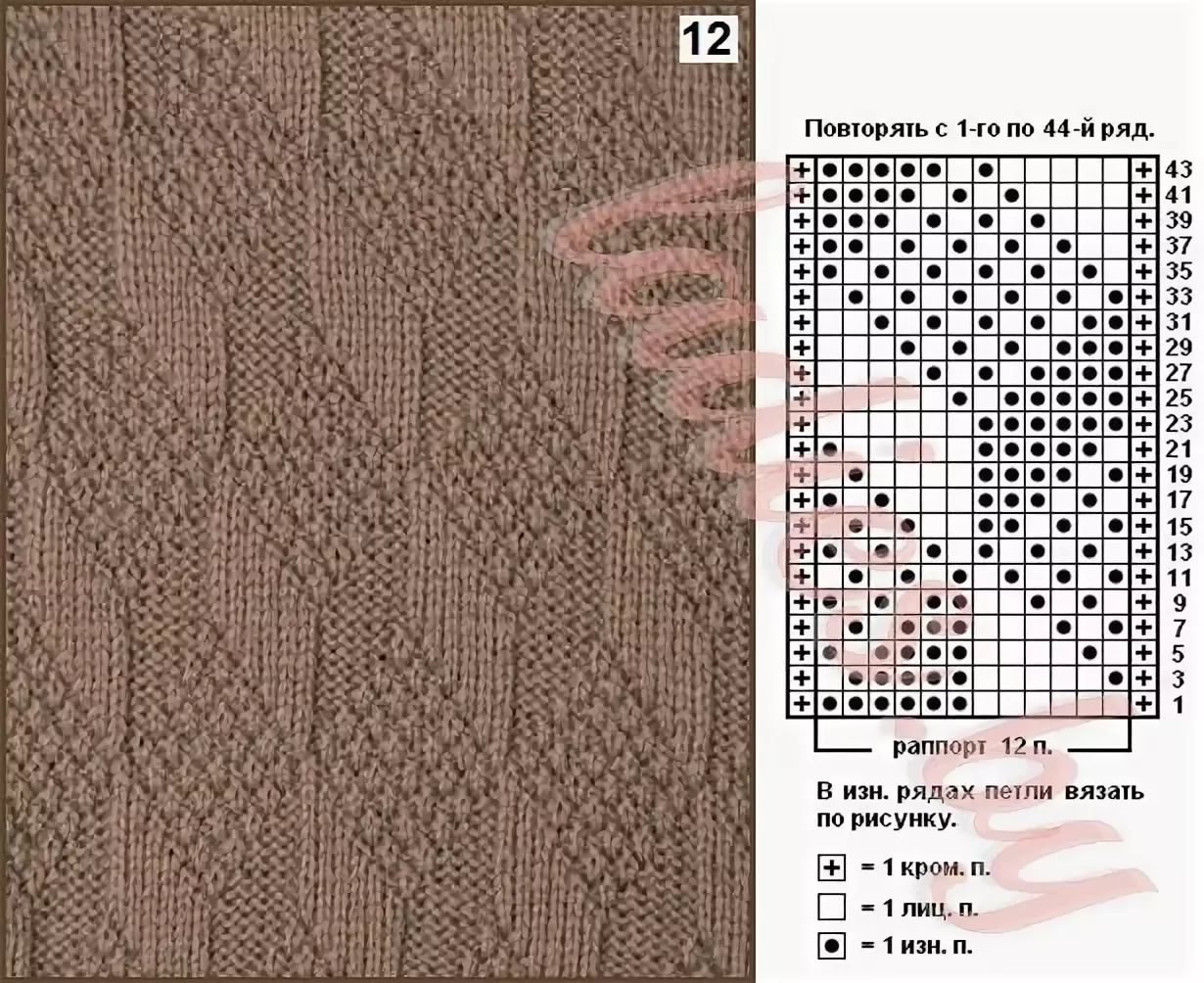 Узор спицами ромбы из лицевых и изнаночных петель схемы и описание