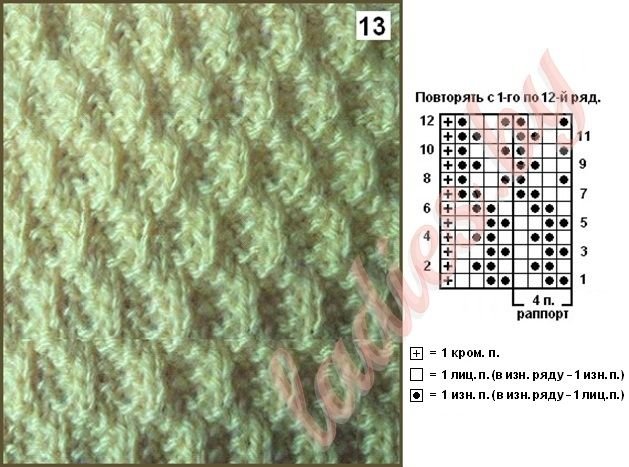 ![Схемы вязания спицами ромбы из лицевых и изнаночных]()