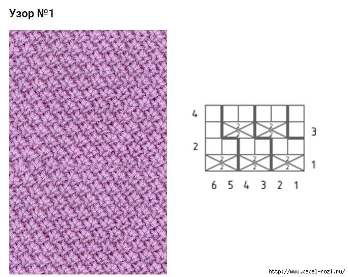 ![Вязание спицами узоры из лицевых и изнаночных со схемами]()