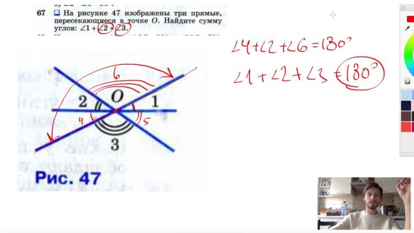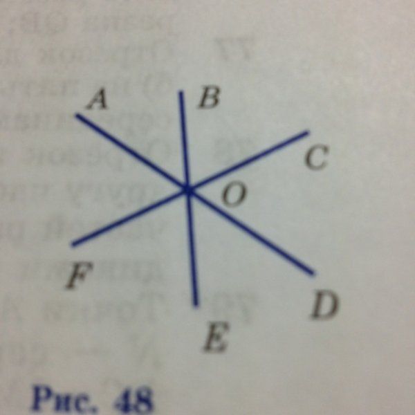 На рисунке 47 изображены три прямые пересекающиеся в точке о