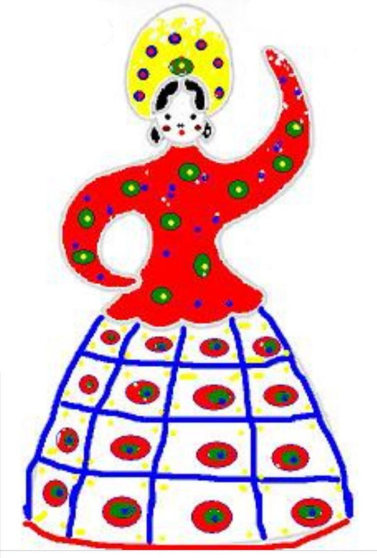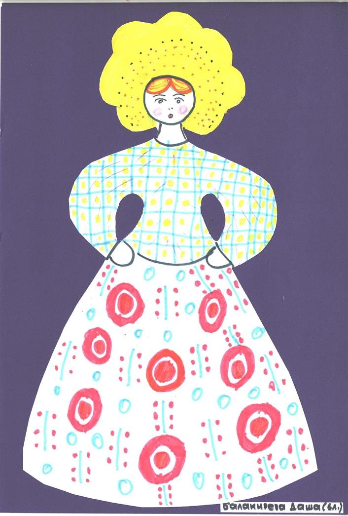 Элементы дымковской росписи барышни