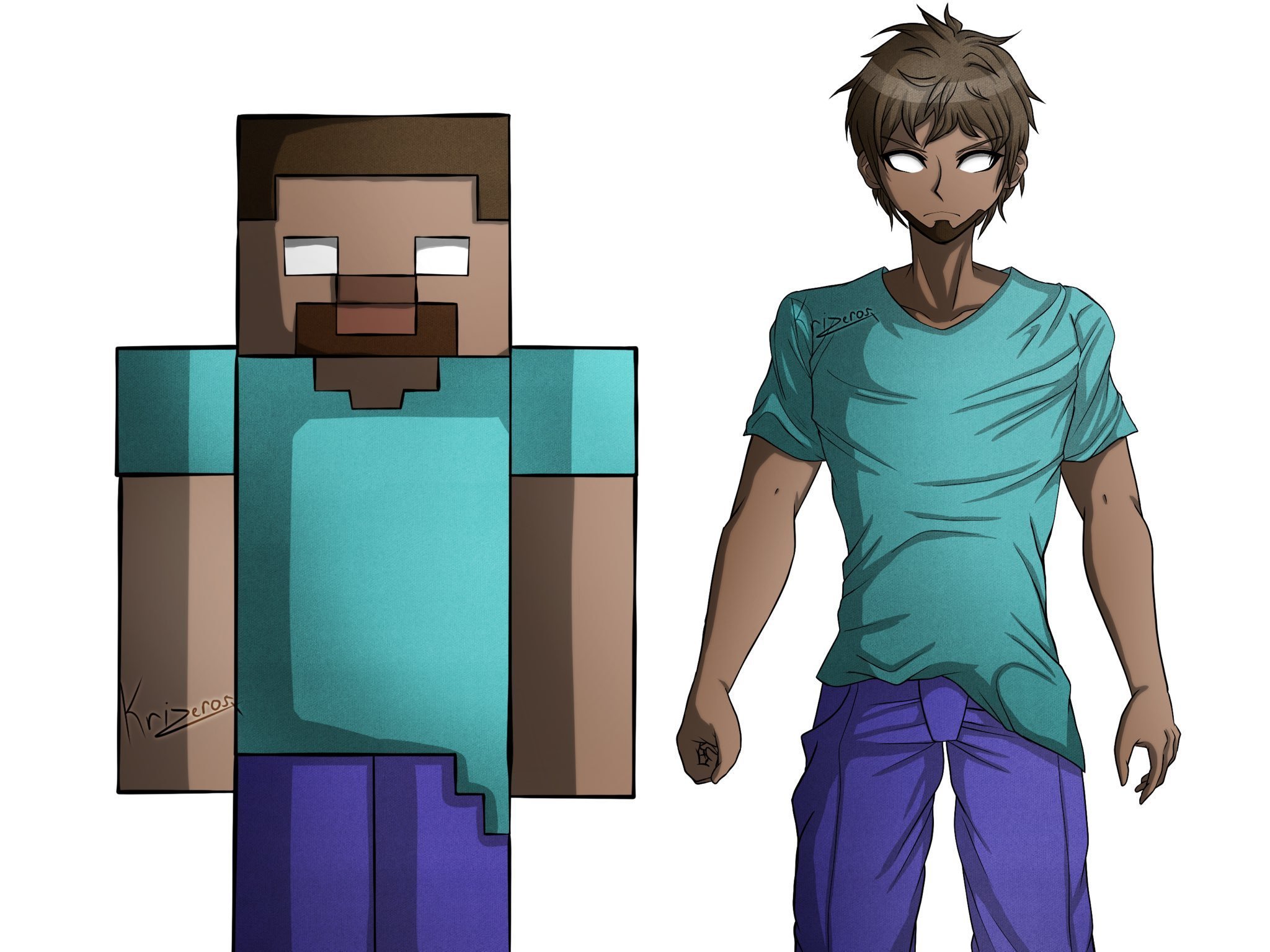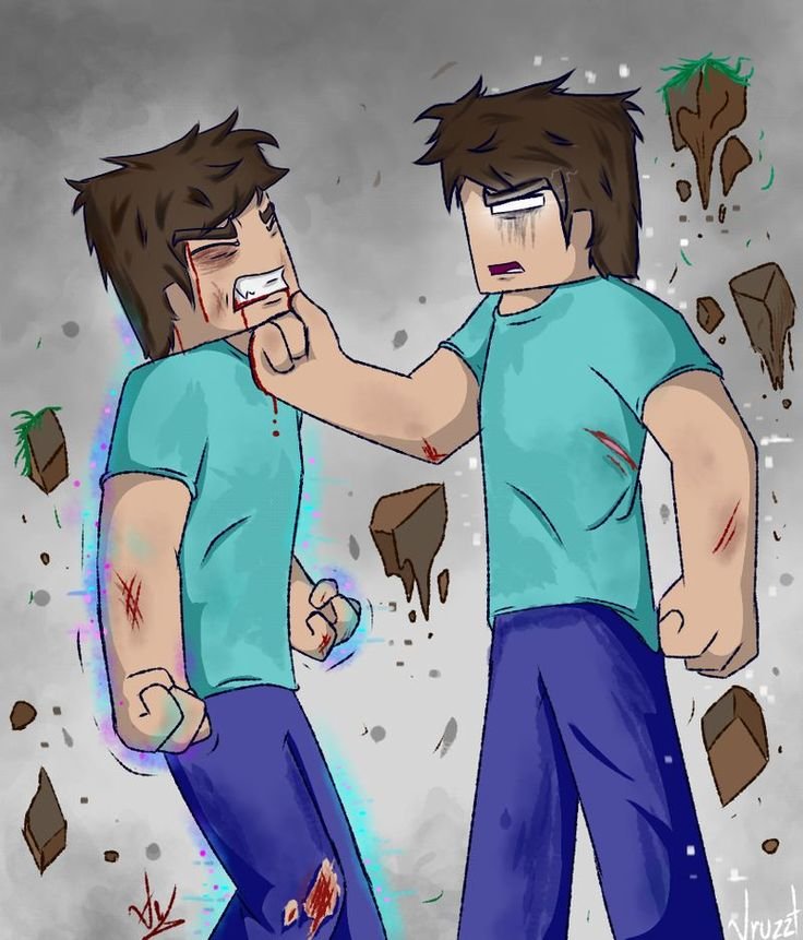 ![Майнкрафт арт ХЕРОБРИН И Стив]()