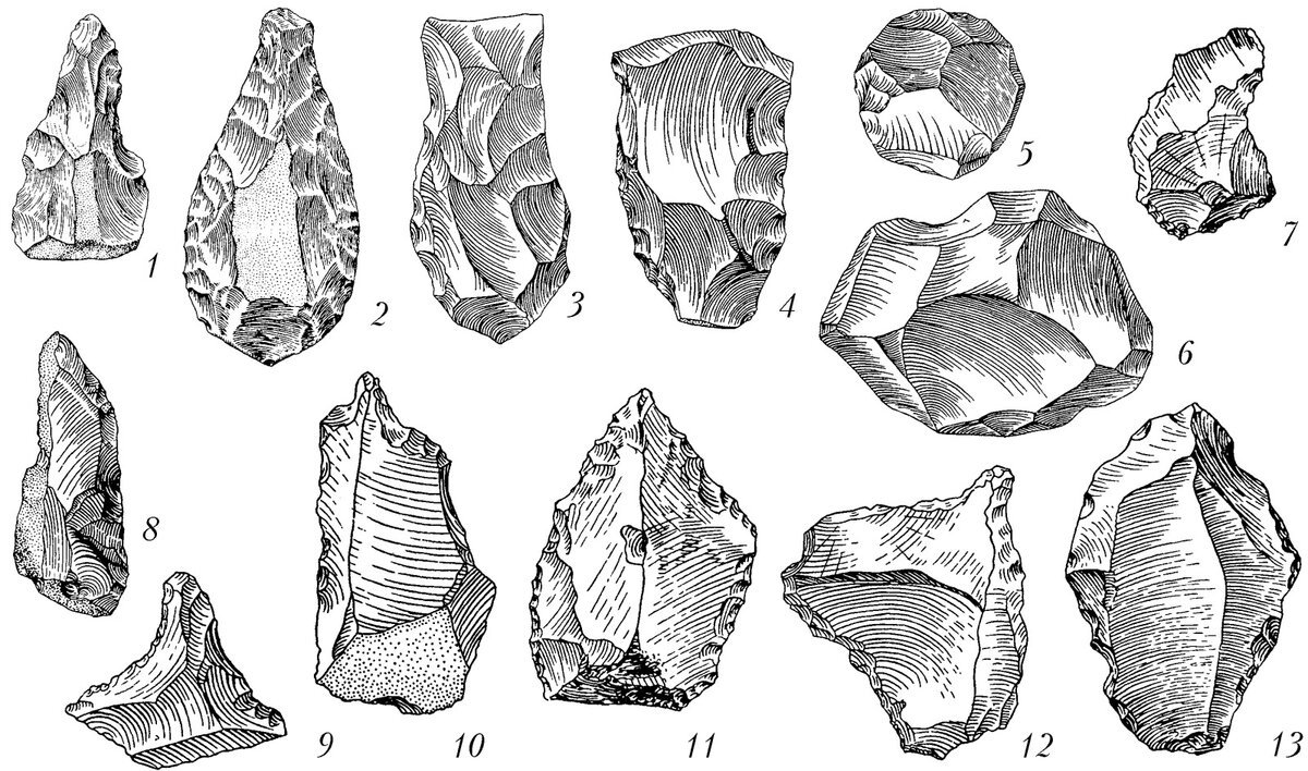 ![Верхнепалеолитические кремневые орудия Костенки 1]()