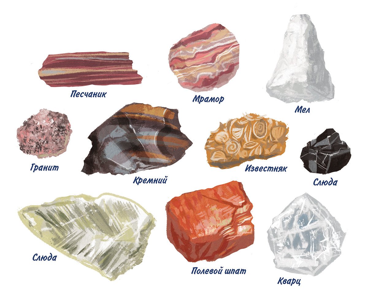 ![Гранит кремень известняк]()