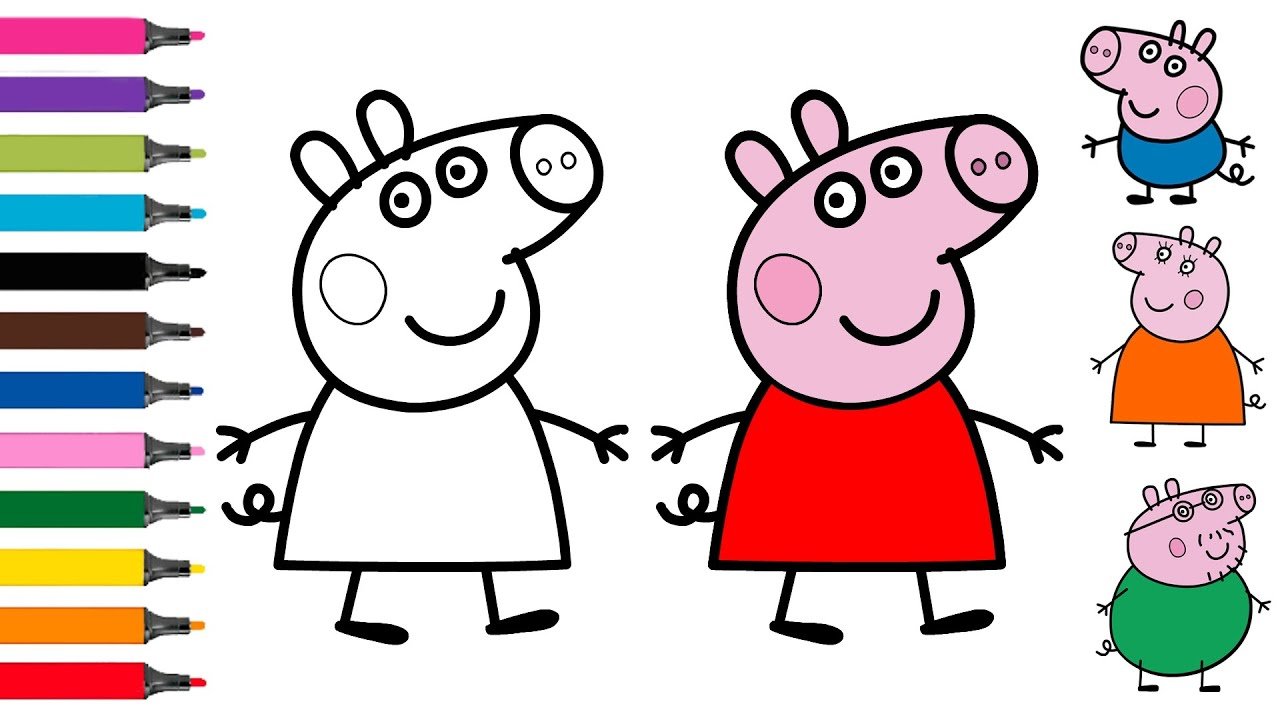 ![Как нарисовать свинку Пеппу и Джорджа]()