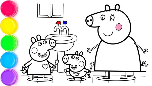 ![Свинка Пеппа раскраска для детей 2-3 лет]()