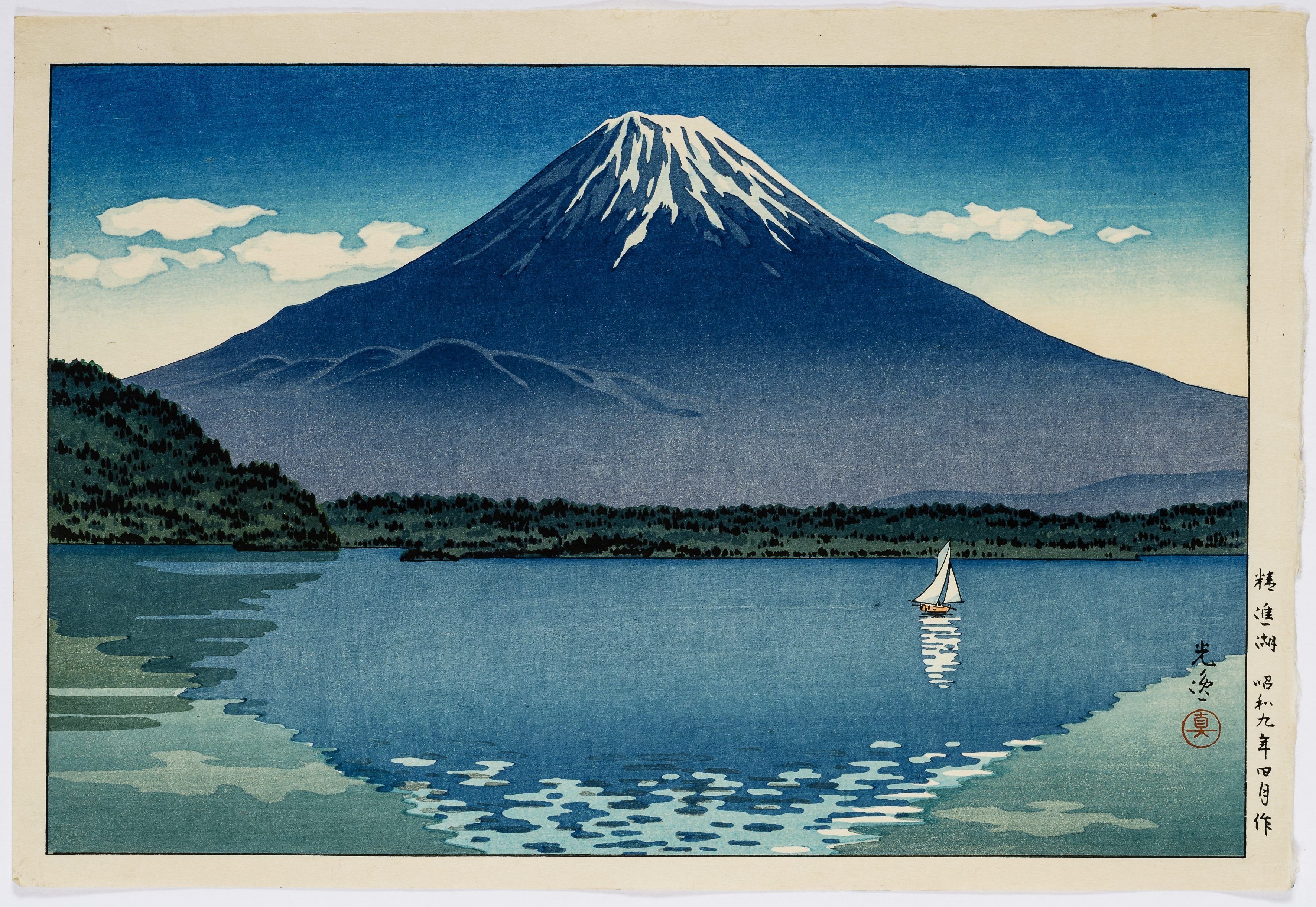 ![Японская гравюра гора Фудзияма]()
