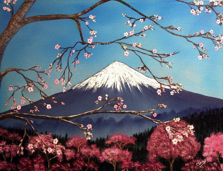 ![Гора Фудзияма живопись]()