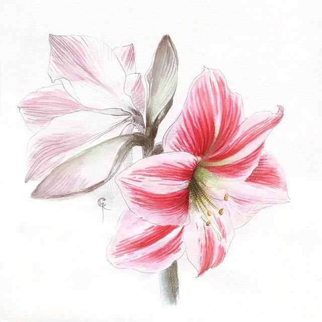 Гиппеаструм акварелью