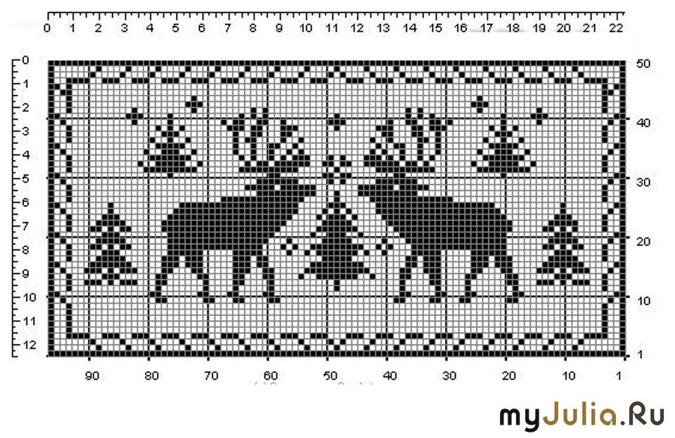 Схема вязки оленя спицами на свитере