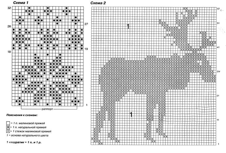 ![Схема вязки оленя спицами на свитере]()