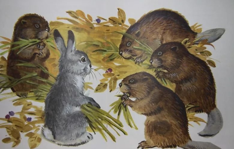 ![Листопадничек Соколов-Микитов заяц с зайчихой]()