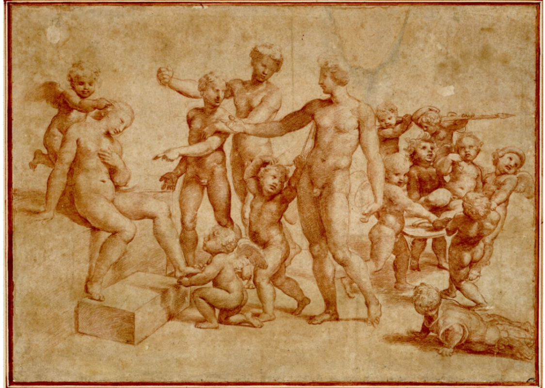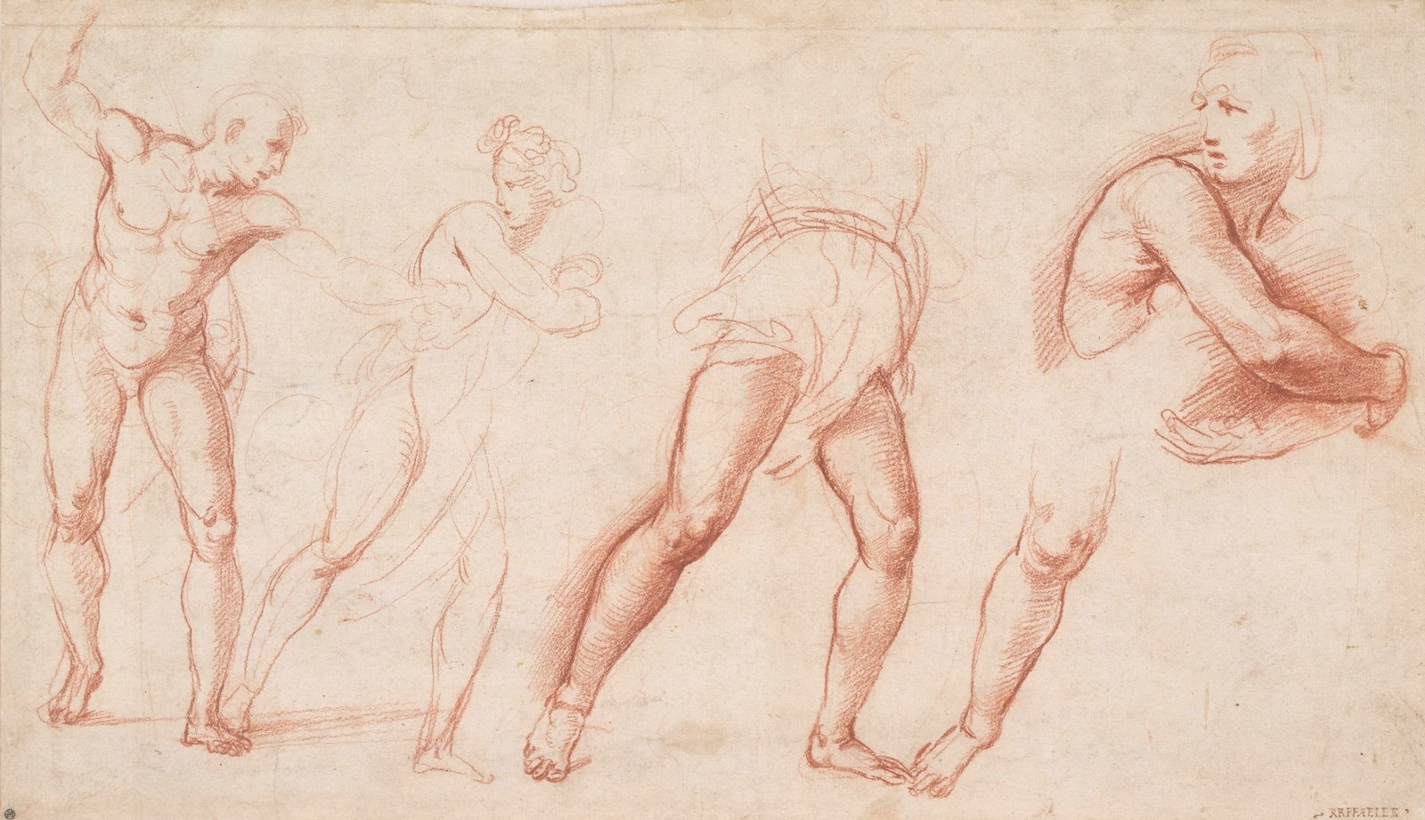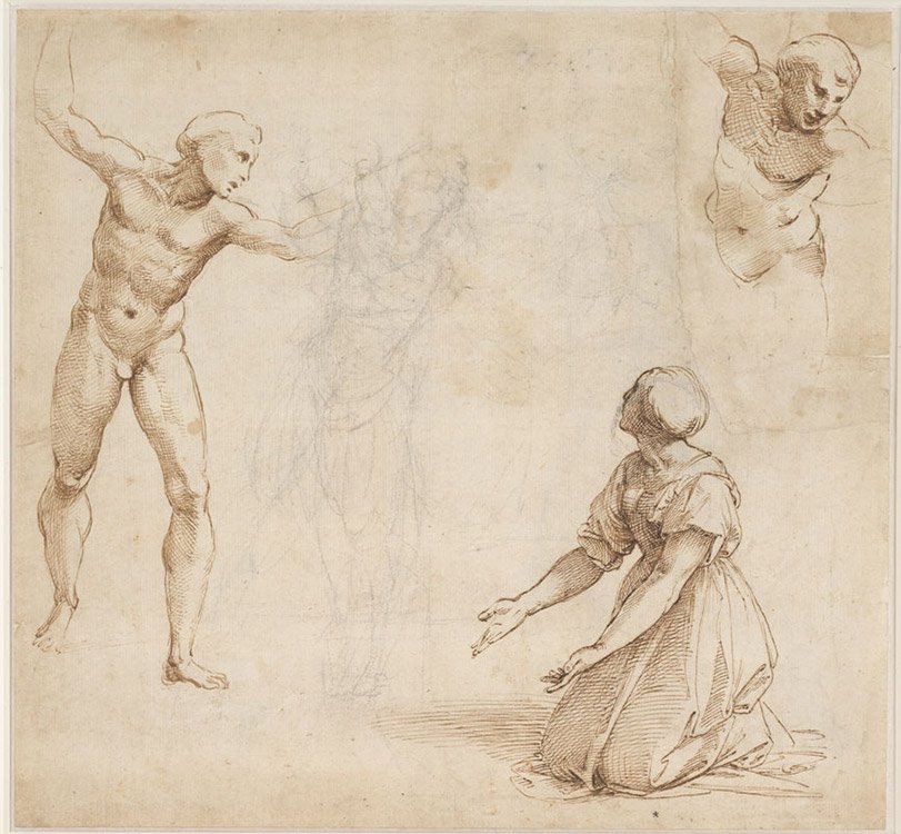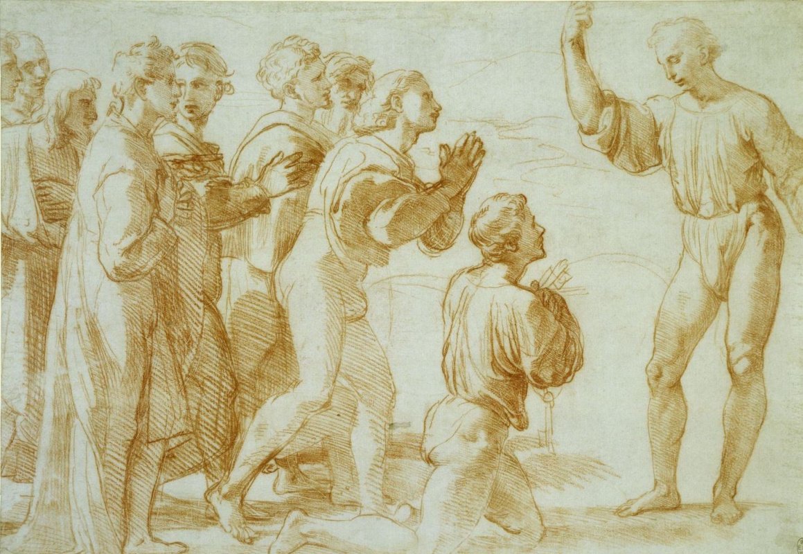 ![Рафаэль Наброски фигур сангина Италия]()