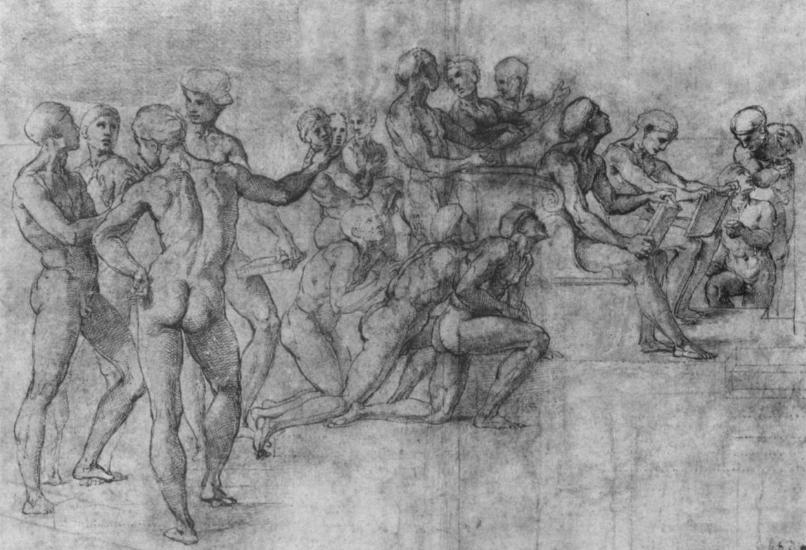 ![Рафаэль Санти набросок фигур]()