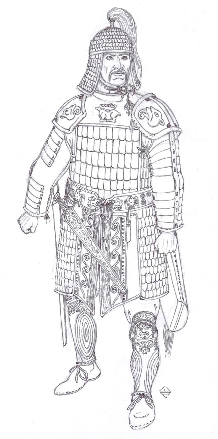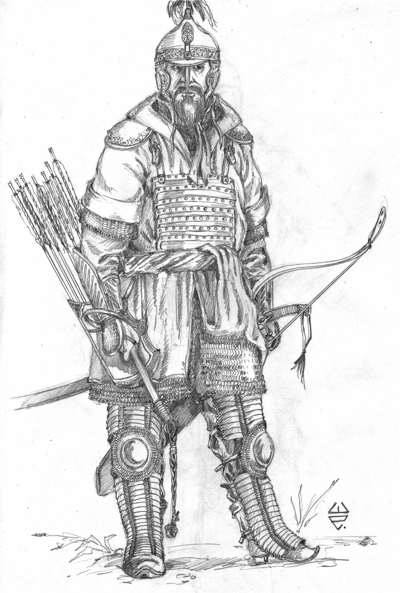 Гуннский воин - могучий и неотъемлемый символ древних битв и силы. В этом рисунке гуннский воин изображен во всей своей величественной красоте. Одетый в тяжелую броню, украшенную интригующими орнаментами, он держит в руке длинный меч, готовый к бою. Его взгляд наполнен решимостью и непоколебимостью, а мощные мышцы подчеркивают его физическую силу и выносливость. Каждая деталь рисунка передает атмосферу древности и стремительности миропорядка гуннов, делая их воина по-настоящему запоминающимся образом. Этот рисунок - настоящее произведение искусства, которое привлечет внимание любого ценителя истории и эпических сражений.