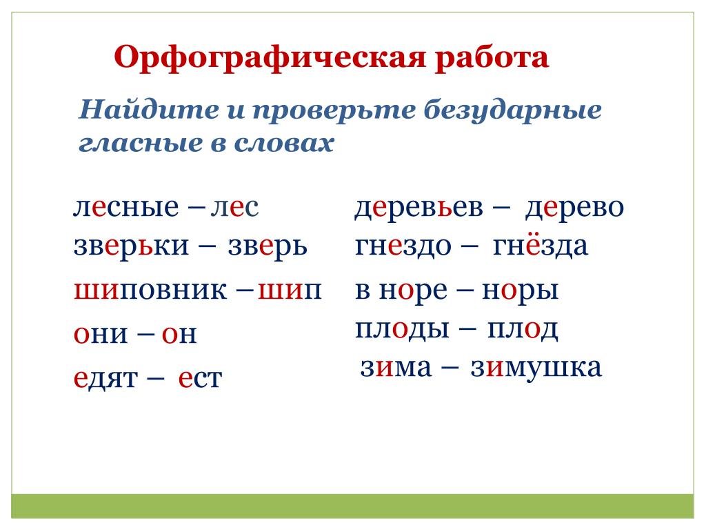 10 Слов с безударной гласной с проверочными словами 2 класс