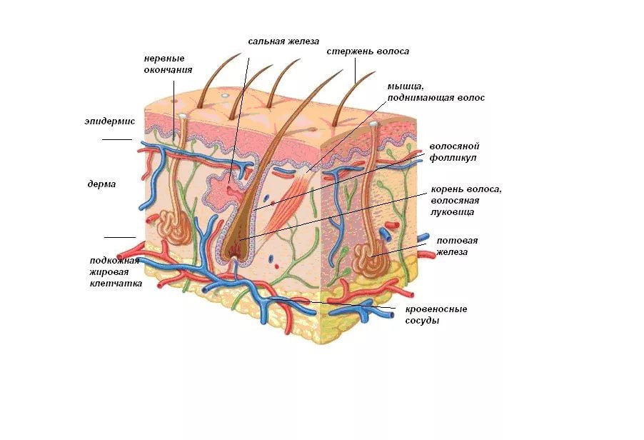 ![Строение кожи и волоса]()