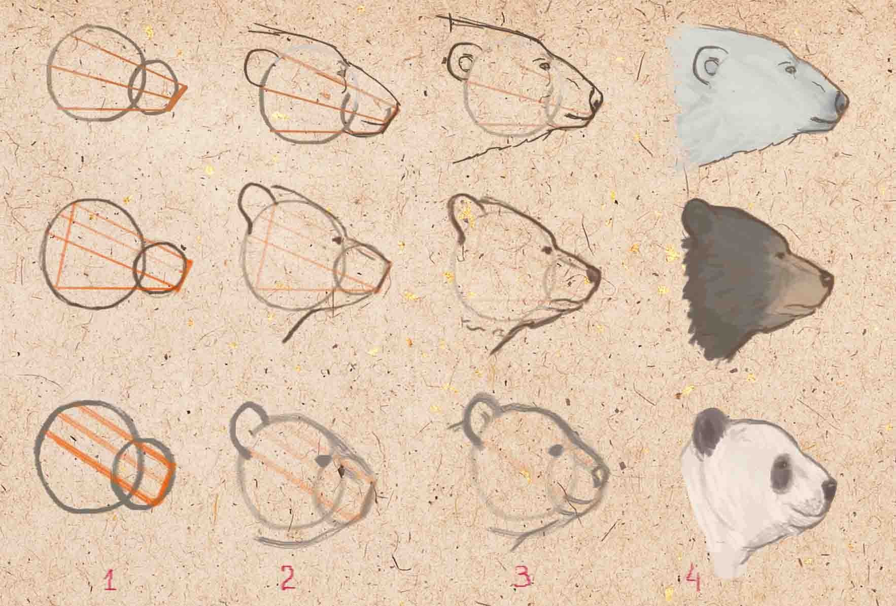 Анатомия головы медведя для рисования