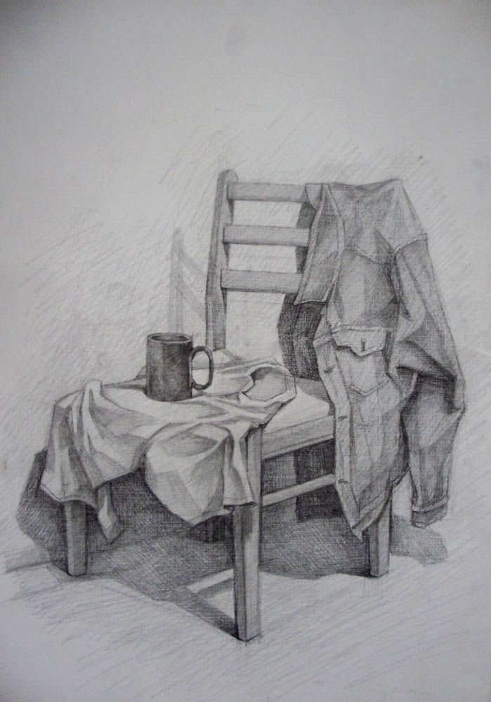 ![Зарисовка стула карандашом]()
