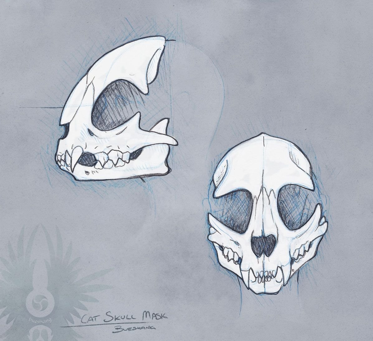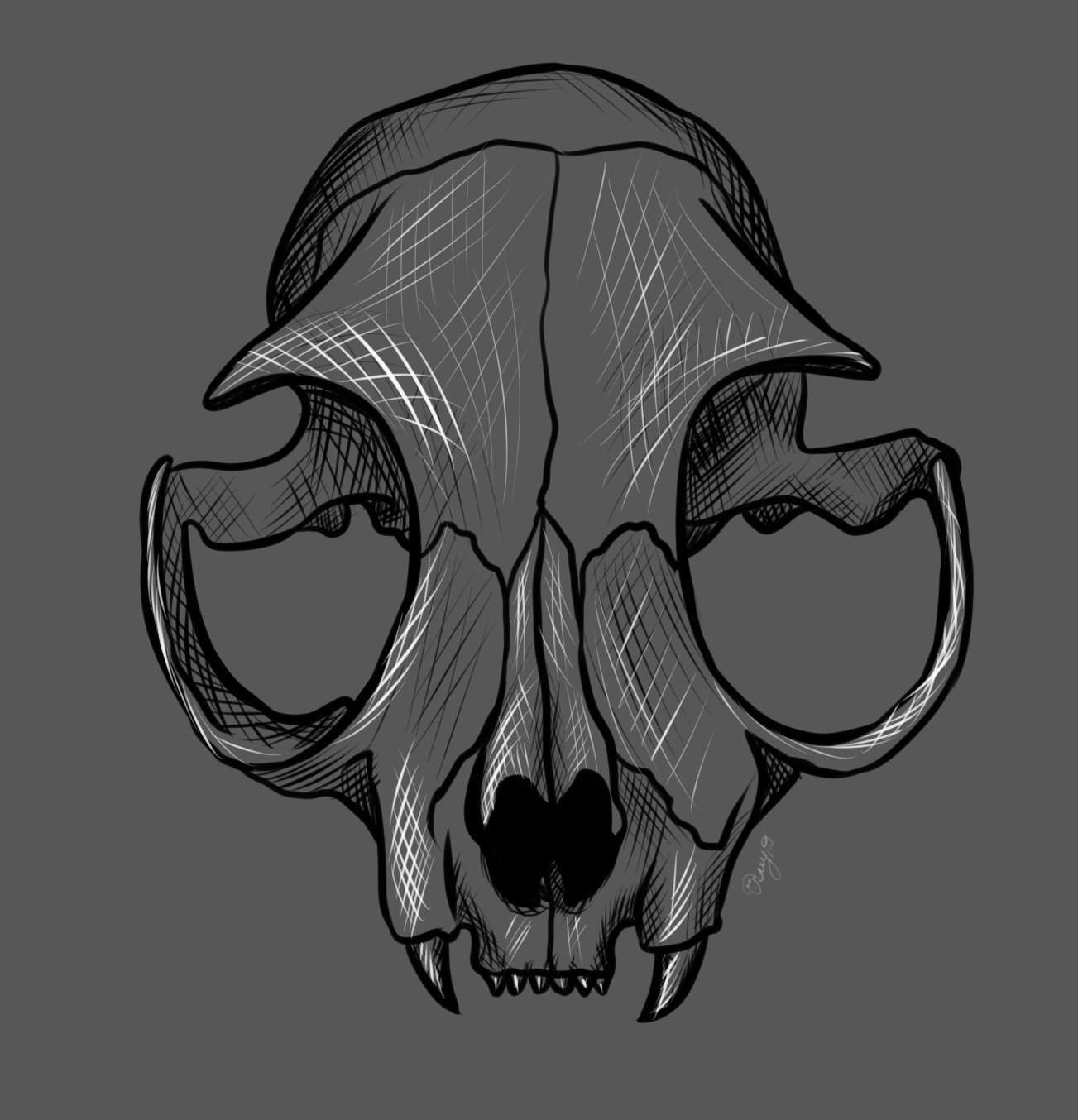 ![Череп кошки эскиз]()