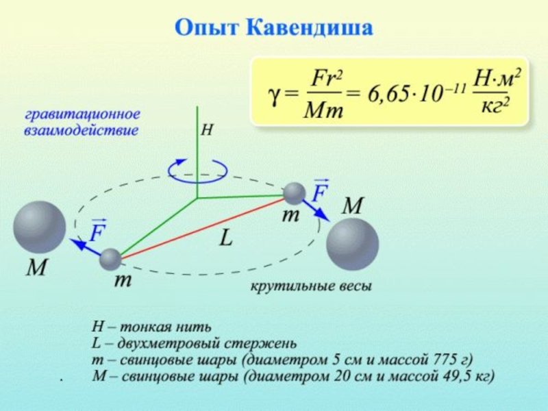 ![Опыт Кавендиша закон Всемирного тяготения]()